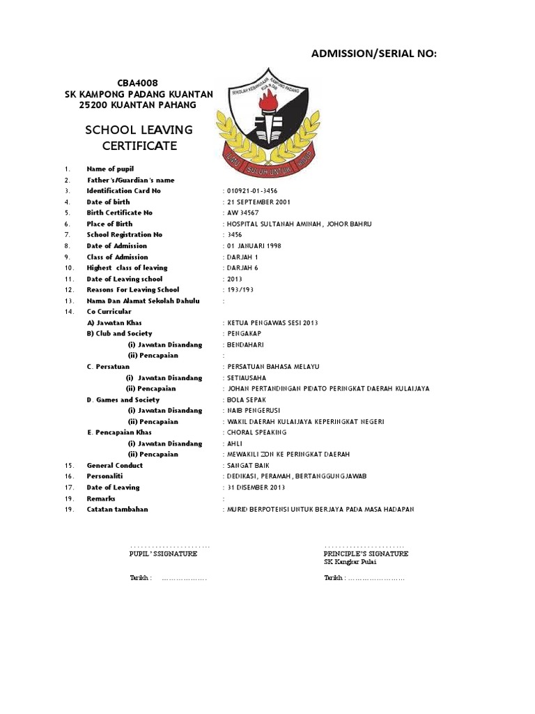 Sijil Berhenti Sekolah Versi Inggeris Pdf